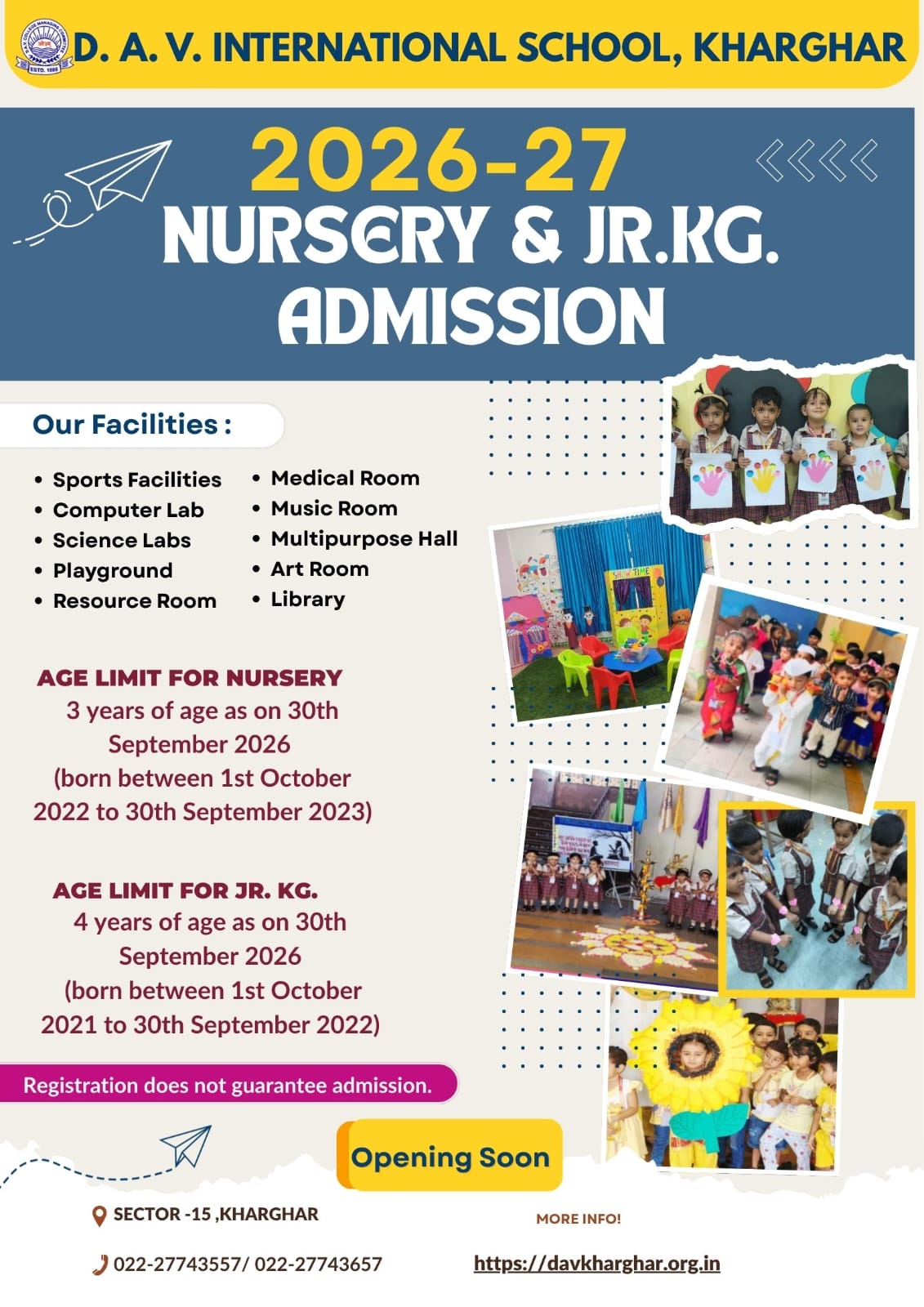 DAV INTERNATIONAL SCHOOL, KHARGHAR PLOT NO.31, SECTOR -15, KHARGHAR, NAVI MUMBAI, RAIGAD, MAHARASHTRA - 410 210 E-Mail : [email protected] Website : https://davkharghar.org.in